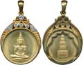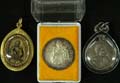 LOT NO: 1678 Starting: THB 29000 Approx: 725 "Luang Pu Krum - Wat Wang Wha, Rayong; Series 97th Birthday gold medal, round-shaped, weighs 19.7gms. UNC.(1)" หลวงปู่คร้ำ - วัดวังหว้า ระยอง รุ่นอายุครบ 97 ปี เหรียญทองคำ ทรงกลม หนัก 19.7กรัม UNC.(1) |