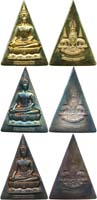 "Luang Poo Tuad - clay amulet x 5, triangular-shaped, original boxes. (5) " หลวงปู่ทวด -5 แชะ พระเนื้อผง x 5 องค์ กล่องเดิม (5) |