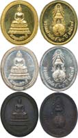 "2500 Buddha 3 pcs. amulets in tin metal, original boxes, very popular. (3)" 25 พุทธศตวรรต พระเนื้อตะกั่ว จำนวน 3ชิ้น กล่องดิม (3) |