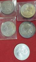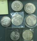 Lot of 6 silver coins & 1 nuckel coin. (7) "กลุ่มเหรียญเงิน 6 เหรียญ และ นิเกิ้ล 1 เหรียญ มีกาญจนา เงินขัดเงา 150, 300 & 600บาท และ อื่นๆ (7)" |