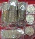LOT NO: 2656 Starting: THB 3000 Approx: 75 Sacks: 1977 Rama IX nickel coins King's 50th Birthday 5 Baht type I(Thailand) x 91 coins all uncirculated. UNC.(91) Sold As Is 2520 เหรียญนิเกิ้ลรัชกาลที่ 9 ชนิดราคา 5 บาท ในหลวง 50 พรรษา แบบที่ 1(ประเทศไทย) x 91 เหรียญ สภาพไม่ผ่านการใช้งาน UNC.(91) ขายตามสภาพ |